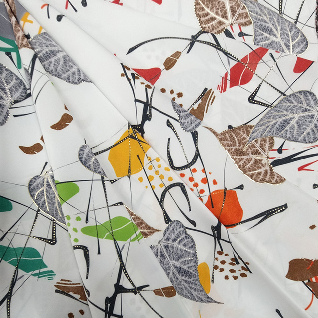 Tùy Chỉnh Lựa Chọn Thiết Kế Lá Vàng In Kỹ Thuật Số Với Lá Polyester Voan Koshibo Vải Crepe Cho Ăn Mặc